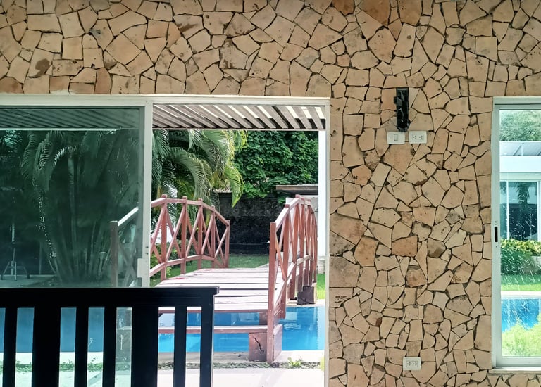 La piedra ticul laminada se puede usar en áreas interiores y exteriores.