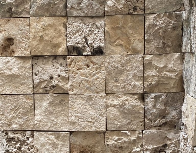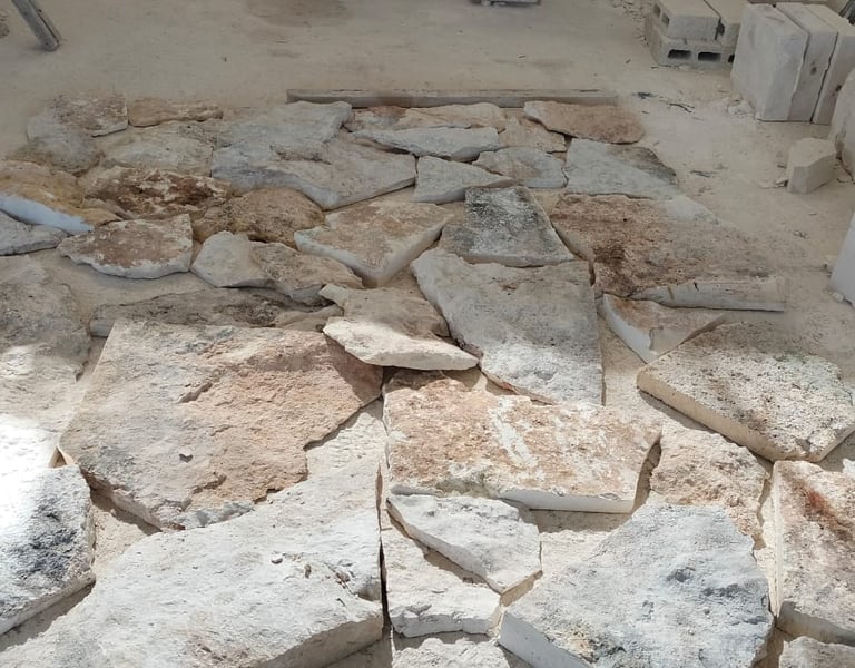 Se realizan cortes en la piedra que permiten obtener medidas regulares, conservando la rusticidad del acabado, facilitando su instalación.