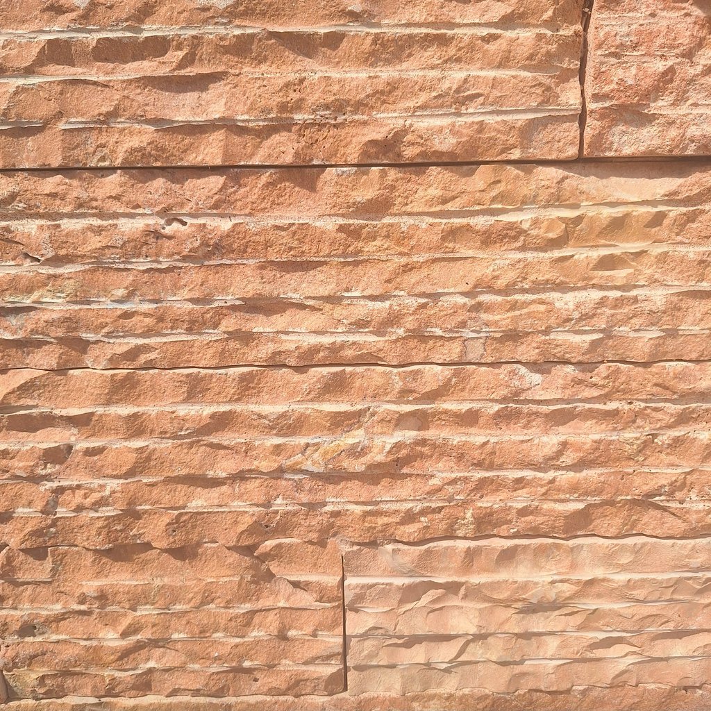 Similar al machacado en su forma rectangular de anchos uniformes y largos libres, el cerroteado se caracteriza por las lineas de corte en la cara de la piedra, generando un efecto viasual de oleaje.