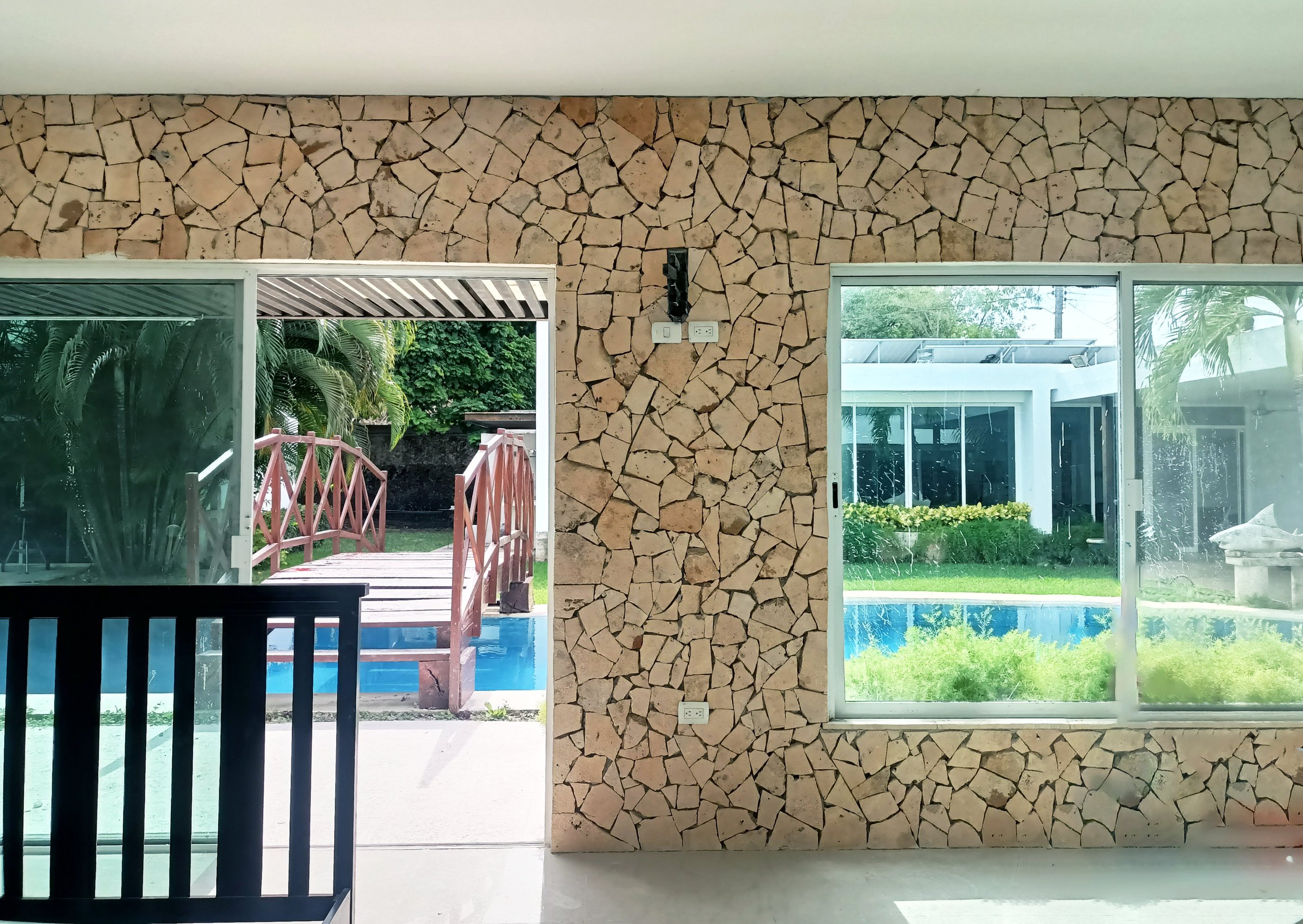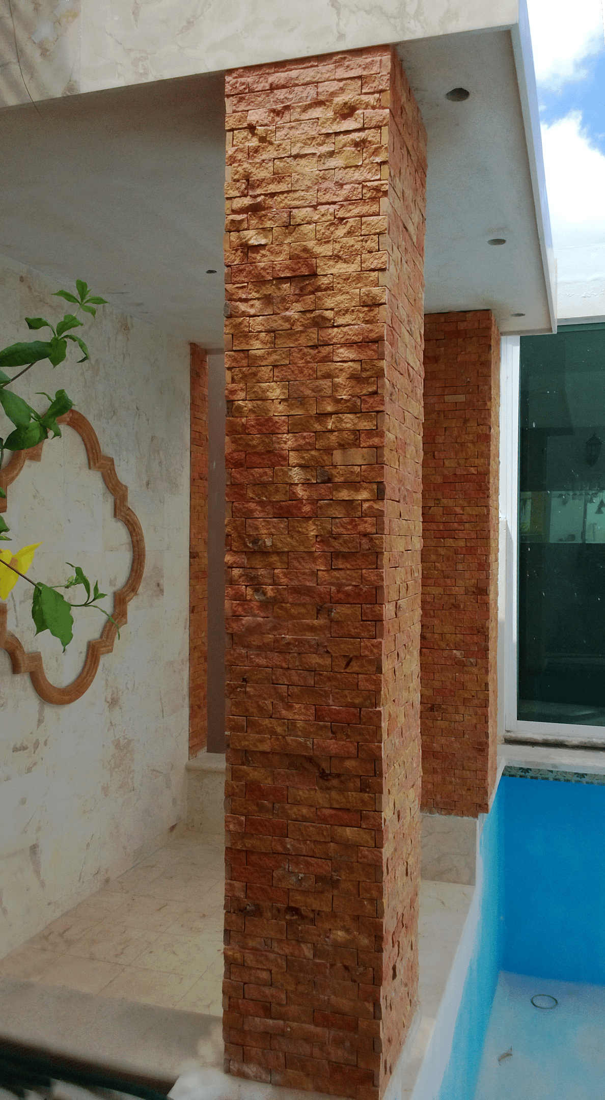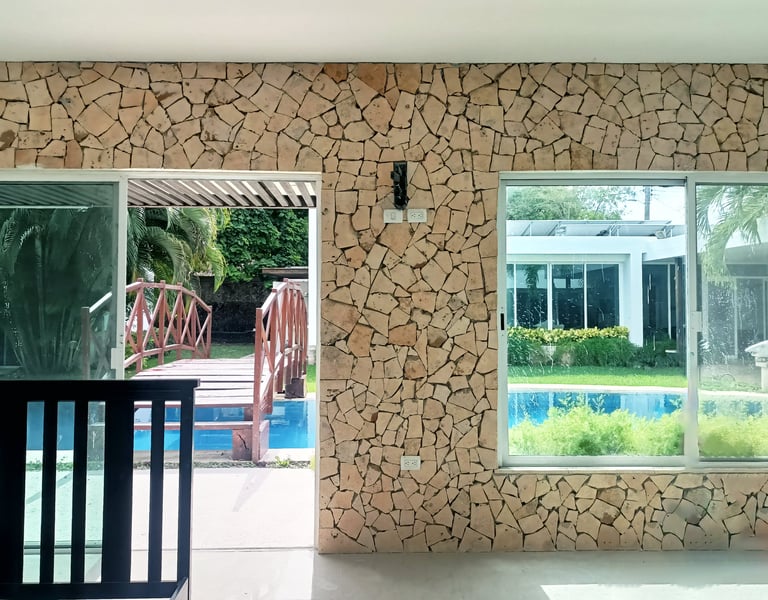 La piedra ticul laminada se puede usar en áreas interiores y exteriores.
