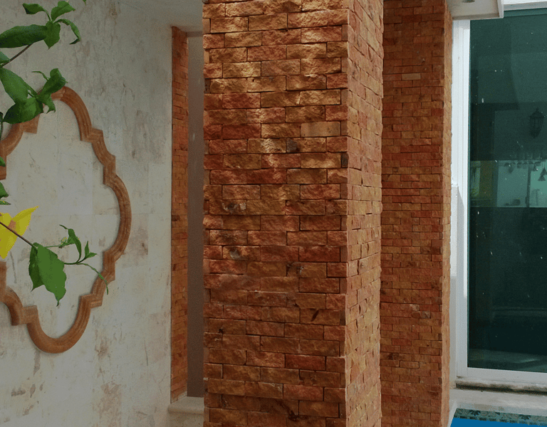 Acabado fino rústico, elaborado con piezas rectangulares con el mismo ancho pero con largos libres, creando un patrón auténtico siendo irregular pero conservando un orden visual que lo hace perfecto para muros, fachadas y detalles decorativos que buscan carácter sin perder armonía.